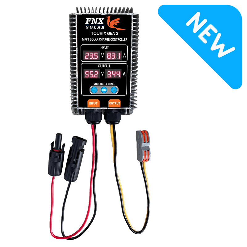 Charge your electric bikes and scooters on-the-go with our innovative solar charging solution, featuring an ultra-efficient MPPT charger and Boost Controller in one compact package.